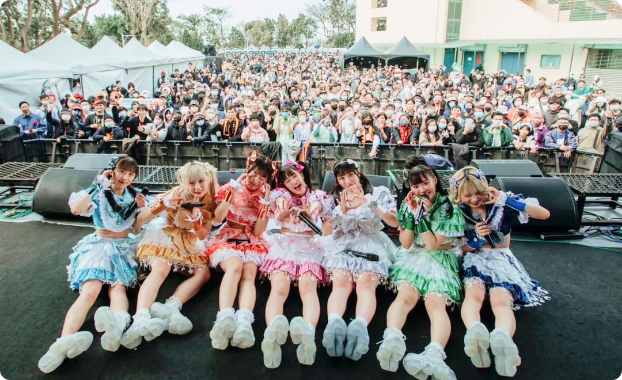 TIFや@JAM、関ヶ原は勿論のこと アジア最大級のJAPAN EXPOや2万人動員の台湾の浮現祭にも日本代表として出演! 2023年2月にタイで開催された JAPAN EXPO THAILAND2023ではプレデビューステージにも関わらず、 日本の超国民的アイドルグループ達と同じ60万人を動員するイベントのメインステージ にて、デビューを果たしました!大型ショッピングモール・セントラルワールドの屋内外が全面活用されたアジアで最大級の日本関連イベントです。近年は韓国やベトナム国際フェスにも出演し、数千人の前でステージをすることも多いです。